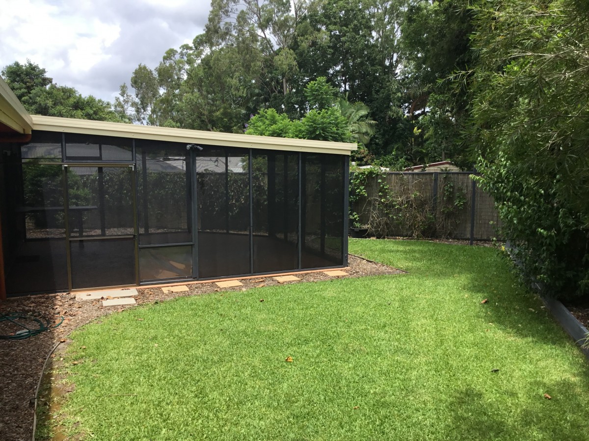 There is a spacious covered and fully screened outdoor entertainment area at the rear with 2 fans installed and overlooking the delightful established gardens. Lawn mowing & garden maintenance is included in the rent