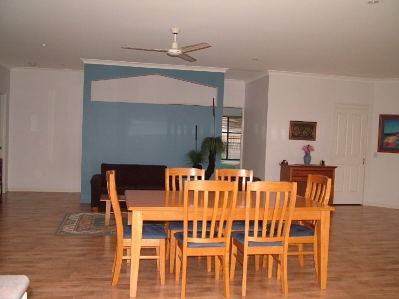 This spacious comfortable home built for the current owners retirement is immaculately presented. Enter through the wide foyer which opens into the spacious open plan informal living area that leads around to the formal lounge and large kitchen, and on out to the attractive outdoor entertaining area, established gardens and in-ground salt water pool. The Double lock up garage has an extra high remote controlled door to accommodate most 4 Wheel drive vehicles It is also 6.5 M x 6.5 M giving plenty of space and there is an extra 5.4 M x 4 M Shed and concrete hardstand for the caravan. The three bedrooms all have built-in robes and fans and the huge main bedroom with walk-in robe and ensuite has access out to the entertainment area and pool. The level 710M2 block is fully fenced from the house front. Among some of the many features are the study/office nook between the house and the garage, the 9' ceilings, 2 way light switches, tinted windows, reverse cycle airconditioner, concrete path all the way around the house and the spa bath in the main bathroom.